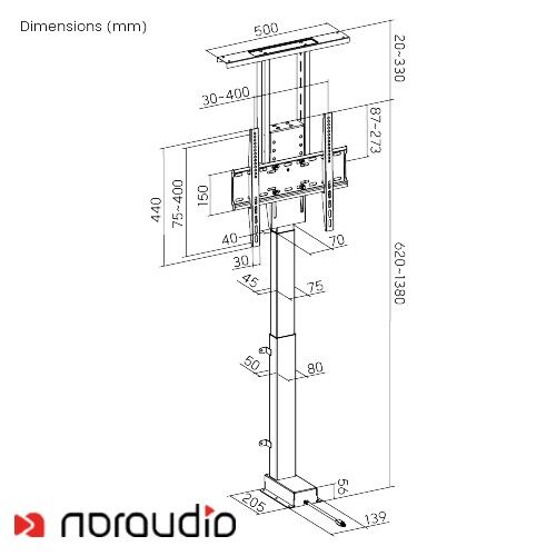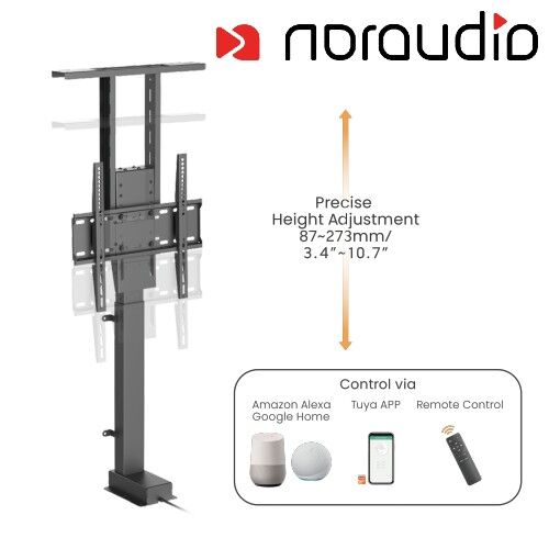 Noraudio Smart Medium motorisert TV-løftestativ løfter de fleste 32"~55" store TV-er opptil 60 kg raskt og stille.