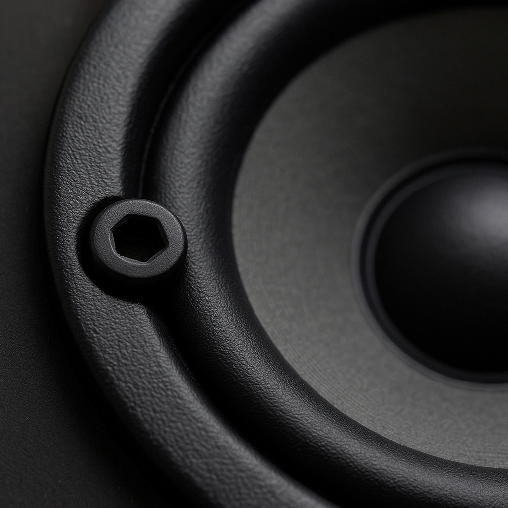 Flotte sorte umbraco treskruer-M4 x 24mm til å feste blant annet høyttalerelement mot MDF og andre tresorter