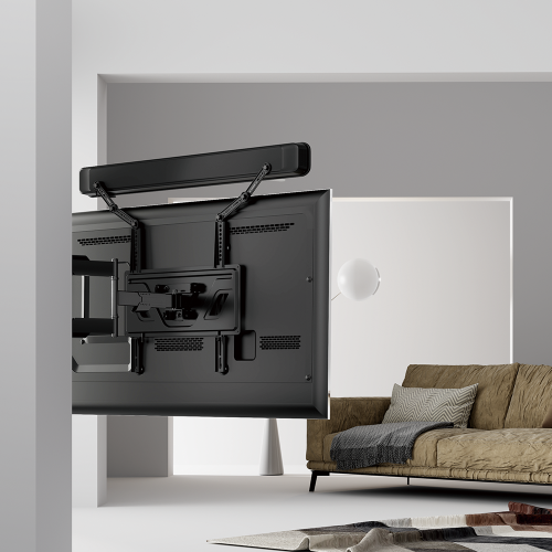 Soundbar-festet kobles direkte til TV-veggfester eller TV-stativer, noe som sparer plass med sitt stilige utseende.